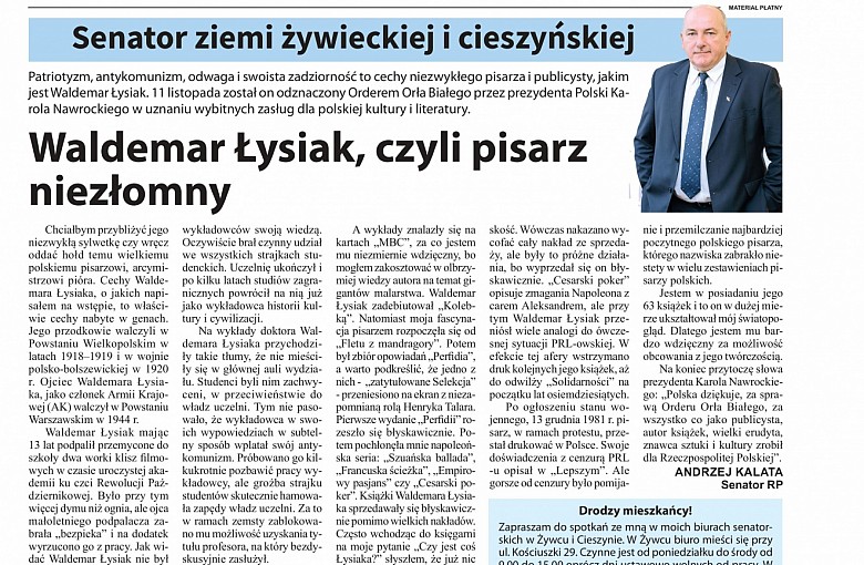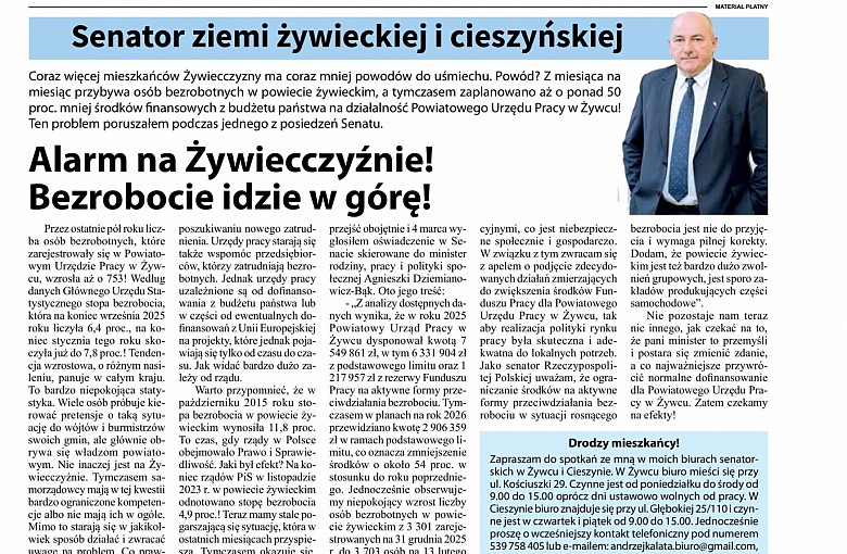Senator RP XI kadencji. Okręg wyborczy nr 79: powiat cieszyński i powiat żywiecki.