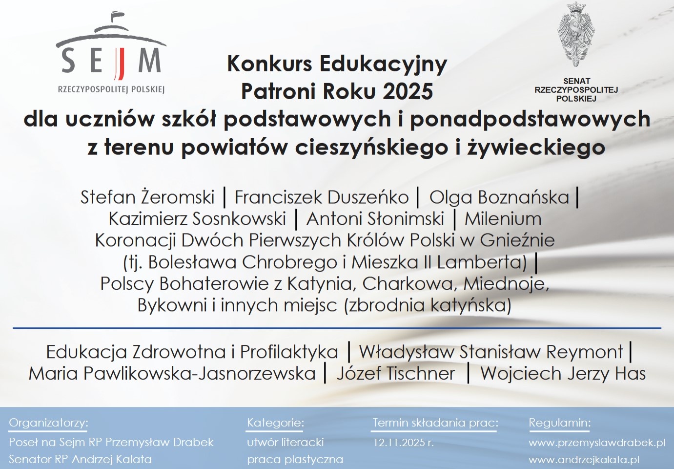 Serdecznie zapraszamy do udziału w Konkursie Edukacyjnym Patroni Roku 2025.