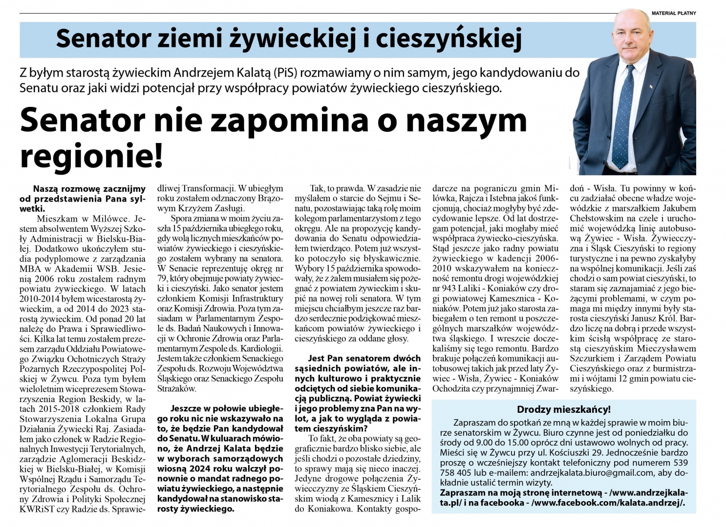 O kandydowaniu do Senatu RP oraz potencjale przy współpracy powiatów cieszyńskiego i żywieckiego