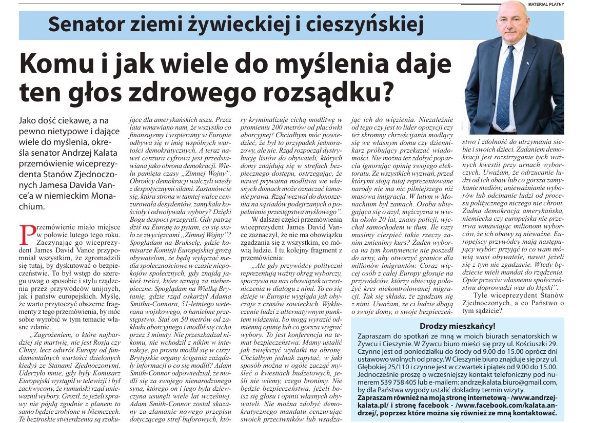 O przemówieniu Jamesa Davida Vance'a, wiceprezydenta Stanów Zjednoczonych, wygłoszonym w dn. 14.02.2025 r. w Monachium