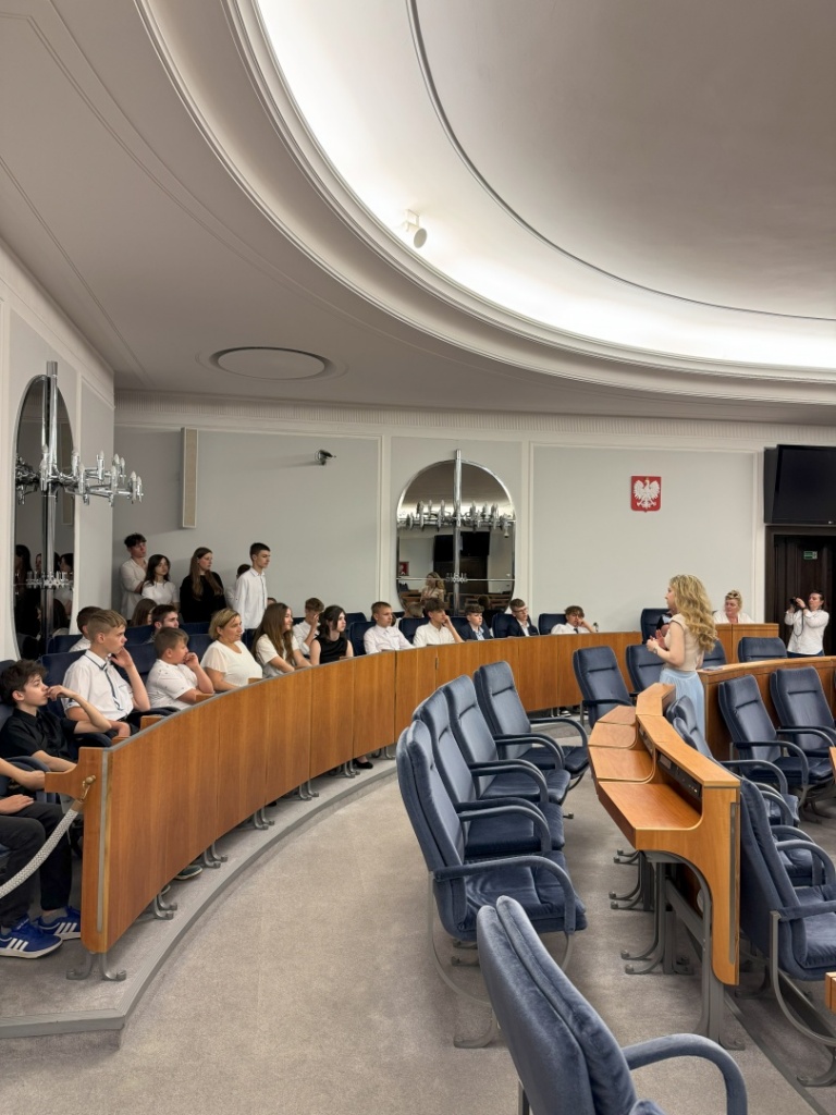 Uczniowie zobaczyli miejsca, w których zapadają kluczowe decyzje dla kraju, poznali strukturę polskiego parlamentu oraz rolę posłów i senatorów.