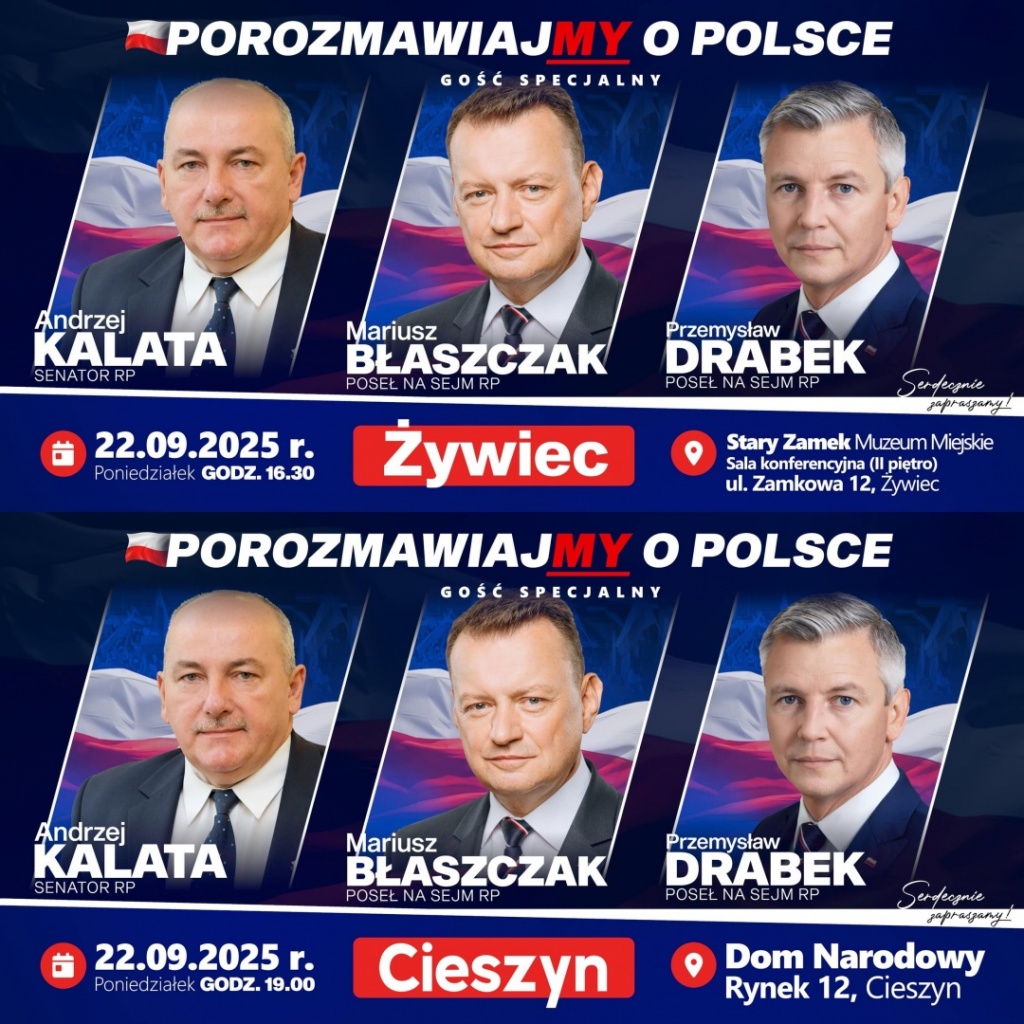 W dniu 22 września 2025 roku odbył się otwarty dyżur poselsko-senatorski w Żywcu i Cieszynie, którego organizatorami byli Poseł na Sejm RP Przemysław Drabek oraz Senator RP Andrzej Kalata.